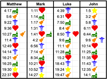 For example, Mark 1:31 beats Mark 1:11, but Mark 4:2 beats Mark 1:31.