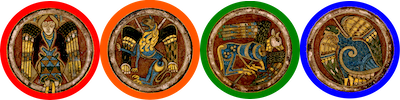 Artwork on the deck is from the Book of Kells and all Scripture is from the World English Bible, both of which are in the public domain.