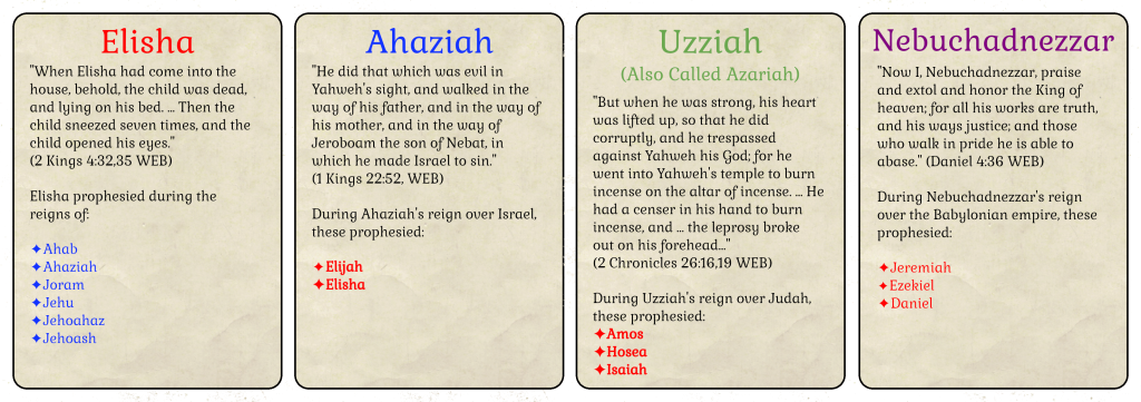 - Note that there are two Jehoahaz cards. One for the king of Israel and one for the king of Judah. Pay attention to which is needed for a given prophet.
