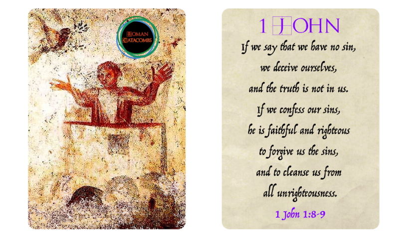 The Roman Catacombs deck of cards has 90 cards. The face of each card has the name of a book of the Bible and a scripture quote from that book.